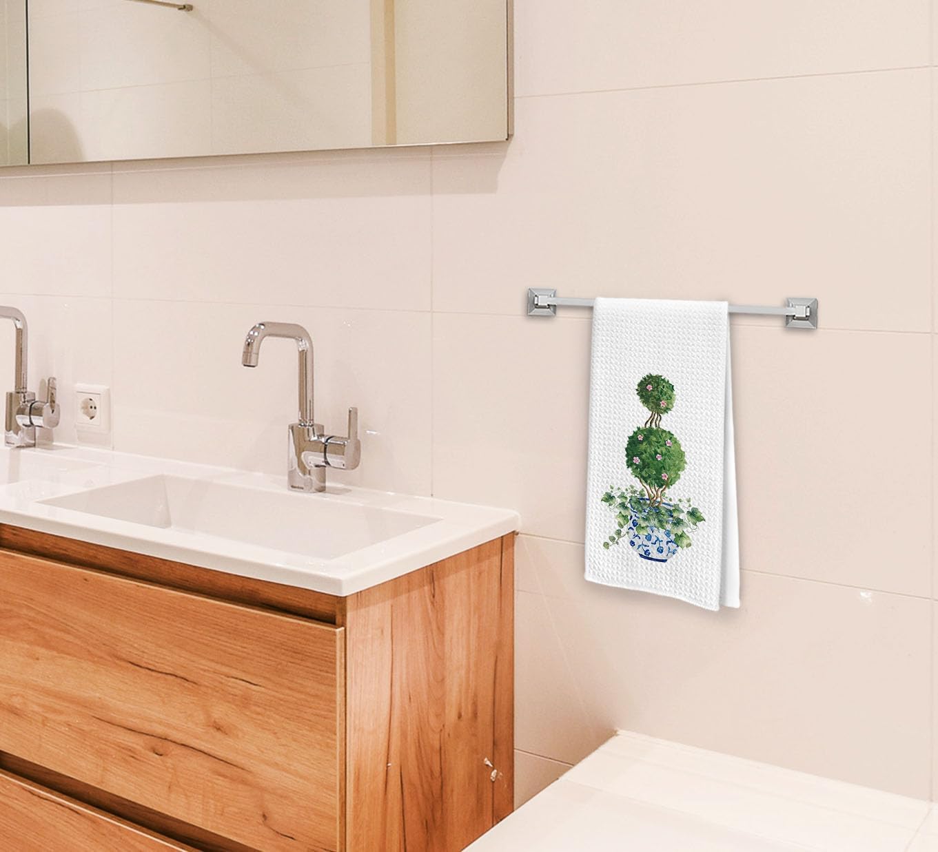 Chinoiserie Decor, Blue and White Porcelain Kitchen Towels Decor, Preppy Chinoiserie Hand Towels, Watercolor Green Topiary Trees Chinoiserie Bathroom Kitchen Decor, Vintage Plant Dish Towels
