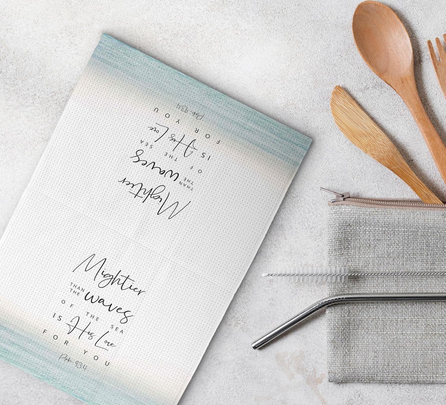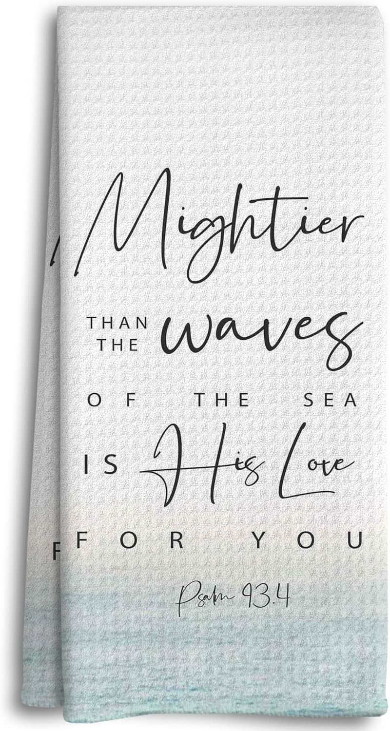 Christian Kitchen Towels, Scripture Kitchen Dish Towels, Mightier Than The Waves of The Sea Bathroom Towels, Bible Verse Hand Towels, Christian Gifts for Women Faith, Religious Gifts for Men