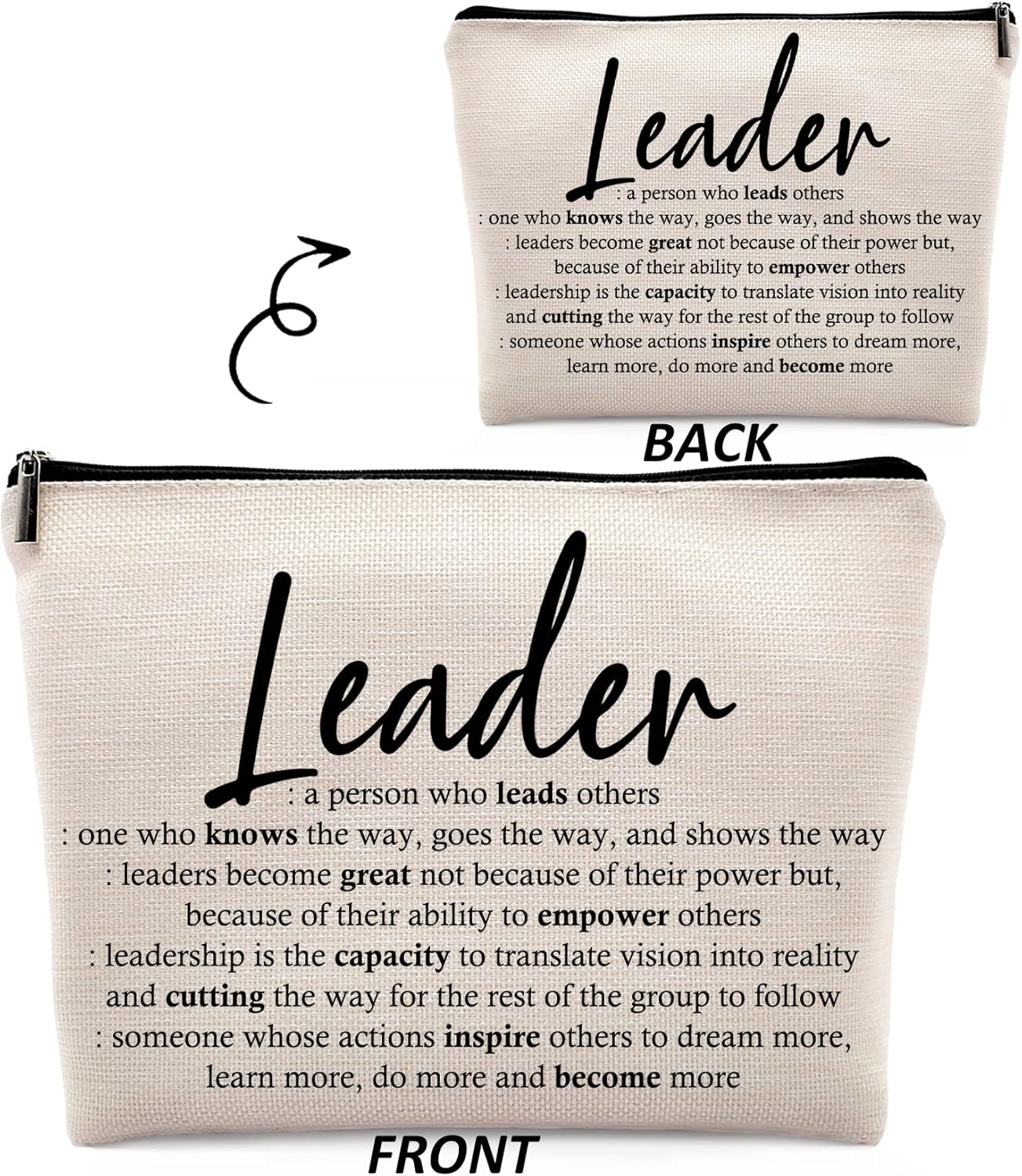 Leader Definition Makeup Cosmetic Bag,Women Leadership Appreciation Linen Makeup Travel Toiletry Bag,Leader Appreciation Cosmetic Bag Gifts for Female Boss Mentor