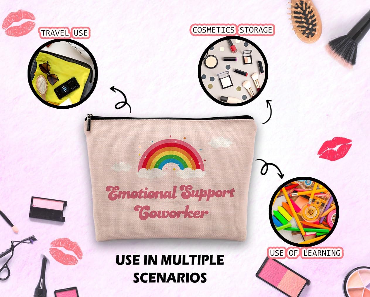 Emotional Support Coworker Makeup Bag, Employee Appreciation Gifts, Coworkers Gifts for Women Colleagues Pink Cosmetic Bag for Purse, Farewell Gonging Away Gifts for Work Friends Beauty Bag