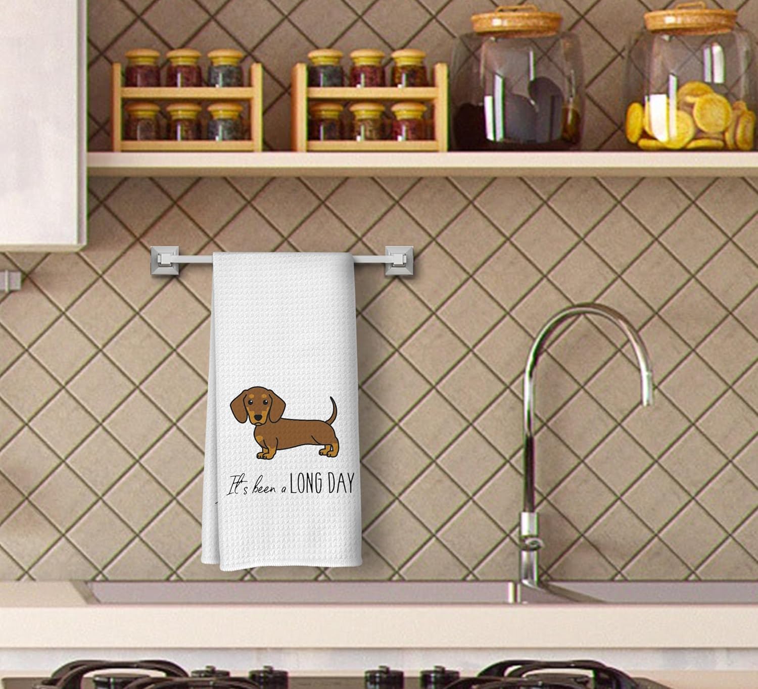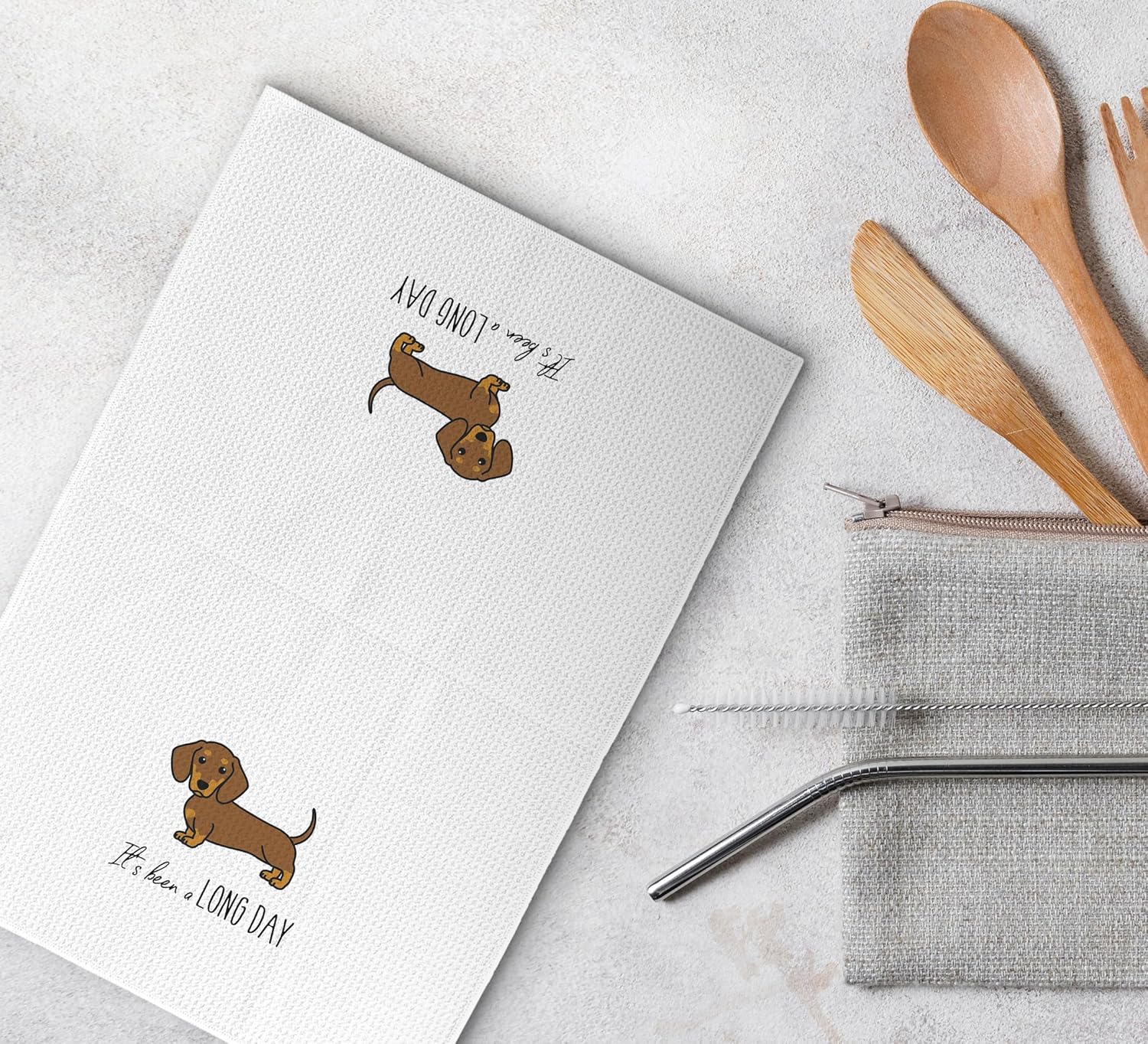 Cute Dachshund It's Been a Long Day Kitchen Dish Towels Dishcloth 16x24 Inches,Funny Sausage Dog Decorative Absorbent Hand Tea Bathroom Towels,Dog Lovers Gifts,Dachshund Mom Gifts