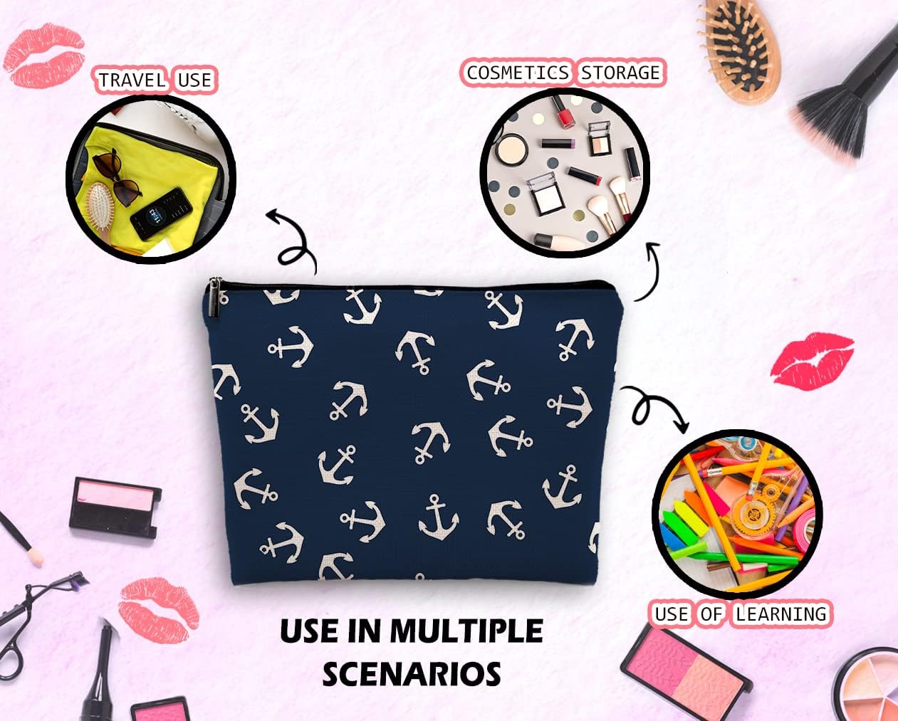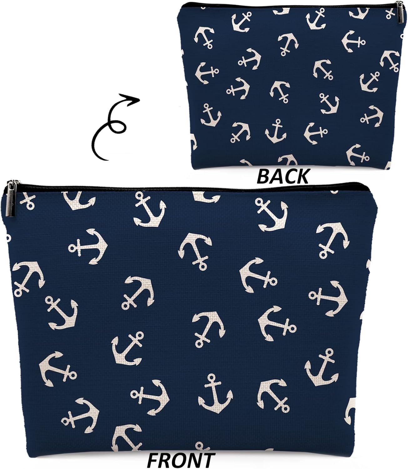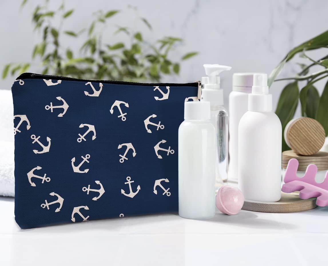 Nautical Anchor Makeup Cosmetic Bag, Marine Symbol Navy Anchor Linen Makeup Travel Toiletry Bag, Nautical Coastal Sailing Sailboat Anchor Cosmetic Bag Gifts For Sea Lovers Sailors Women Girls