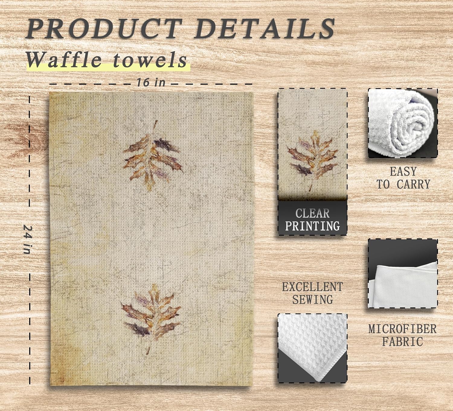 Fall Kitchen Towels, Rustic Vintage Dish Towels, Watercolor Fall Decor, Autumn Leaf Hand Towels for Bathroom, Retro Autumn Botanical Leaves Dishcloths, Thanksgiving Fall Gifts for Women